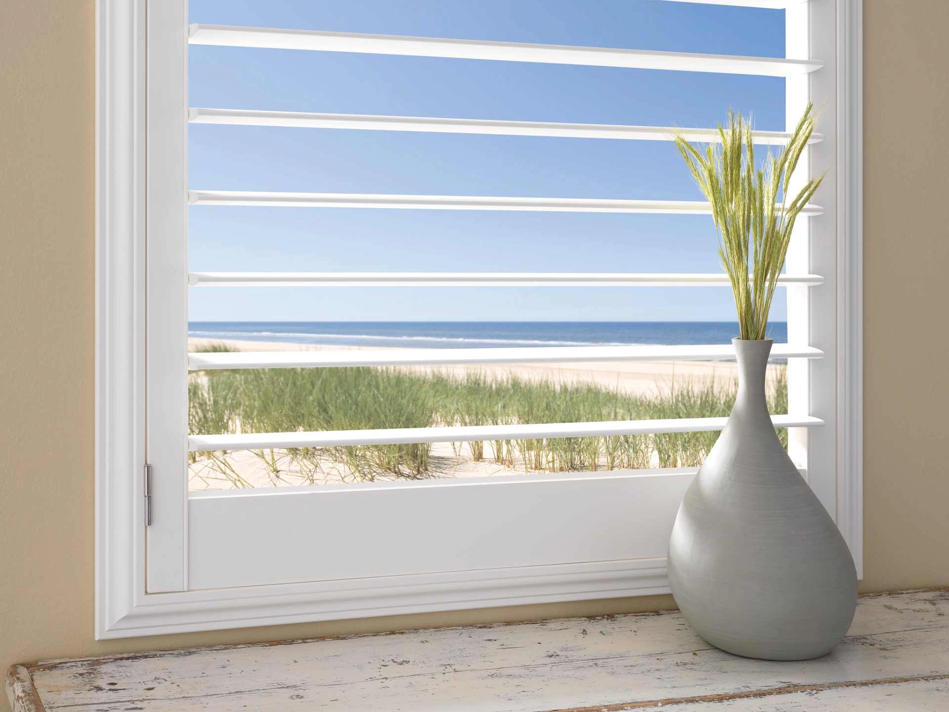 Tip 1: Create A Coastal Style with Hunter Douglas Palm Beach™ Polysatin™ Vinyl Shutters